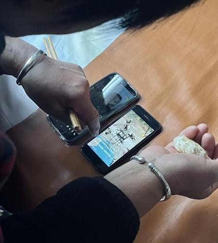 2022年,奶奶一边吃饭,一边用两个手机刷视频挣“火苗”。