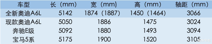 不过,这个账面参数面向同级竞品并非出挑,对比奔驰E级,全新A6L车长多了5厘米,但轴距短了2.8厘米;对比宝马5系,全新A6L车长短了3.3厘米,轴距短了3.9厘米。