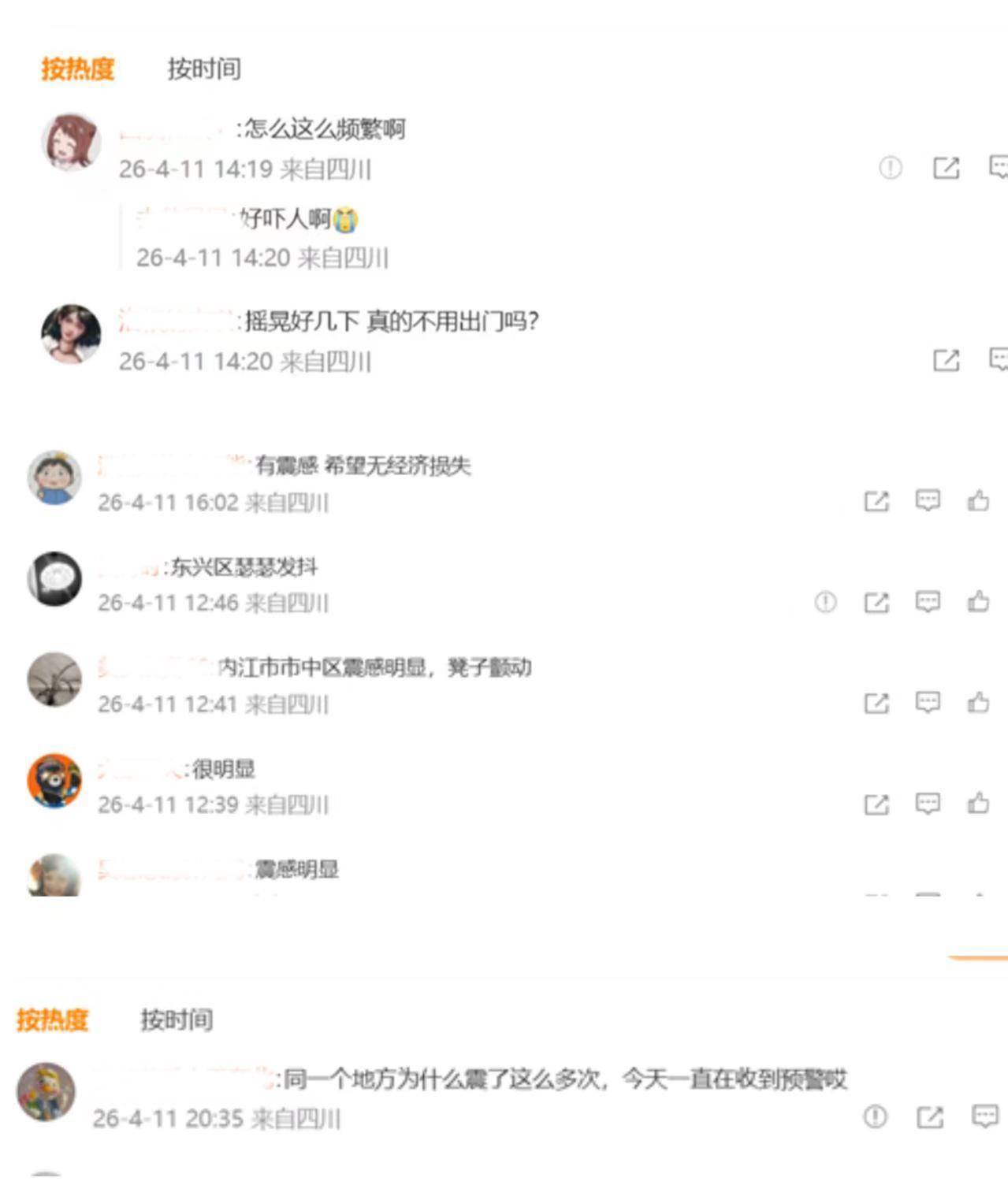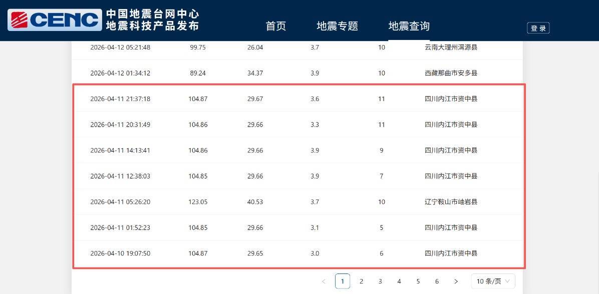 人民网北京4月12日电 (记者王子锋)根据中国地震台网中心历史记录显示,从4月10日晚到11日一天,四川省内江市资中县境内连续发生6起4级以下地震,并且震感明显,其中有两次的震中位置完全重合。对此,许多网友担心:为什么会连续发生这么多起地震?这是否为大震来临的先兆?